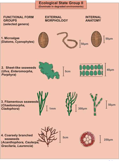 - ESG II comprises fleshy opportunistic (IIA) and filamentous sheet-like opportunistic (IIB) species.